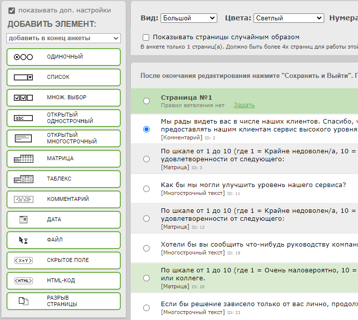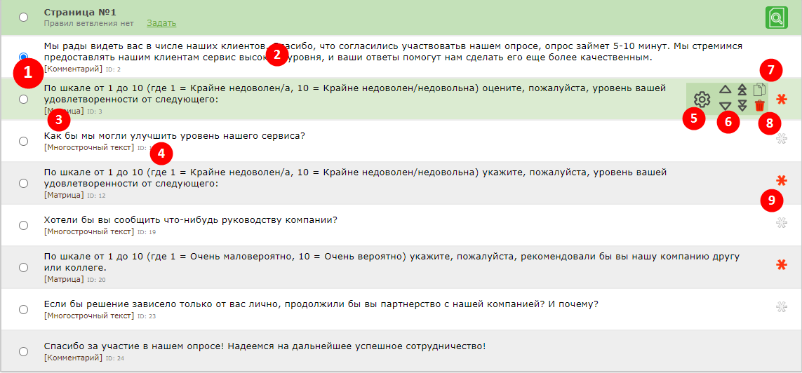 4. ID элемента - каждому вопросу или элементу анкеты назначается идентификатор, он может понадобиться в различных специальных сценариях (передача параметров в анкету, использование ответов респондента в тексте других вопросов и т.п.) [link] или при обращении в службу поддержки, чтобы мы точно знали про какой вопрос идет речь.